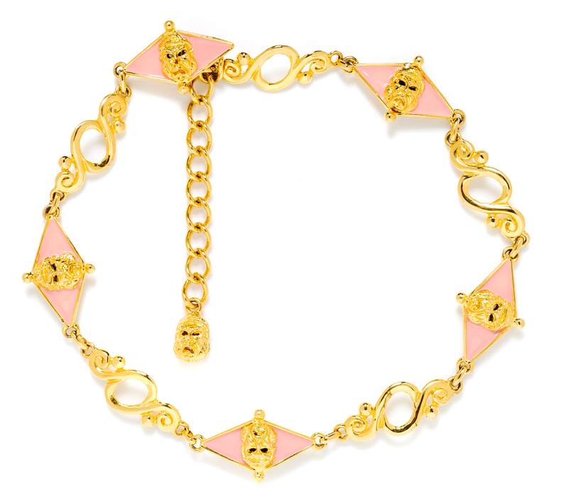 with an ancient tragedy mask motif on pink enamel diamond shaped links and an adjustable hook closure.Stamped: Gianni Versace.