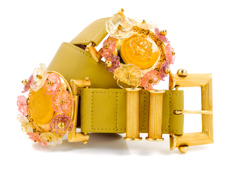 A Gianni Versace Yellow Leather Floral Medusa Medallion Belt,