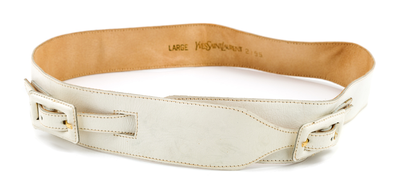 An Yves Saint Laurent White Leather Double Buckle Belt,