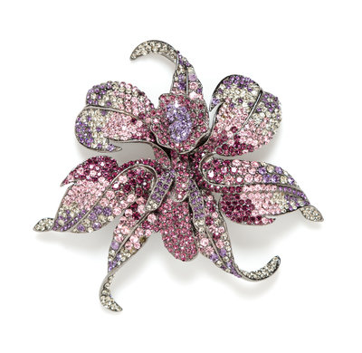 A Barrera Purple Crystal Orchid Brooch,Brooch,