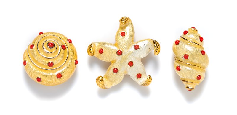 A Group of Carolee Goldtone Starfish and Shell Brooches,