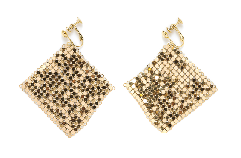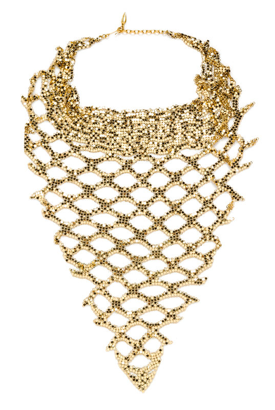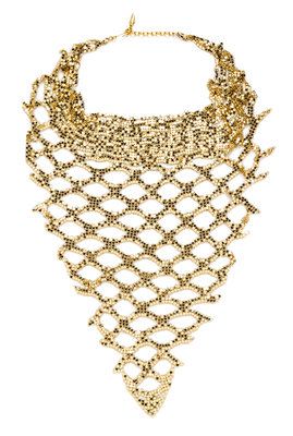 A Whiting & Davis Goldtone Mesh Bib Necklace and Earclip Set,