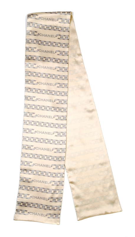 A Chanel Cream Silk Print Bandeau Scarf,