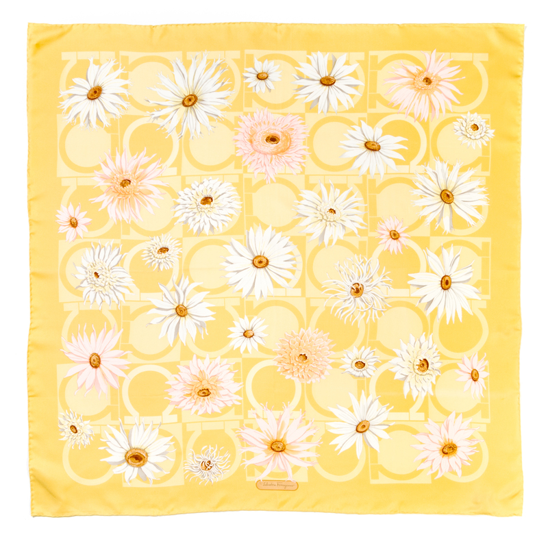 A Ferragamo 90cm Yellow Floral Print Silk Scarf,