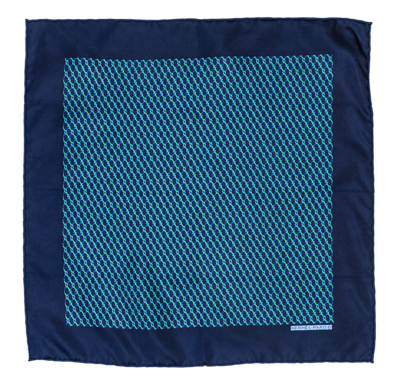 An Hermes Navy Silk Pocket Square,