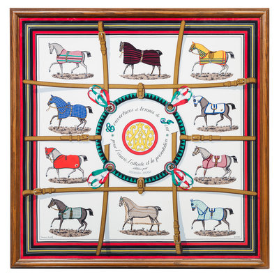 "Couvertures et Tenues de Jour" pattern, designed by Jacques Eudel.Together in a frame. Labeled within the print: Hermes.