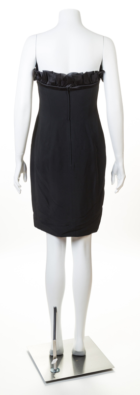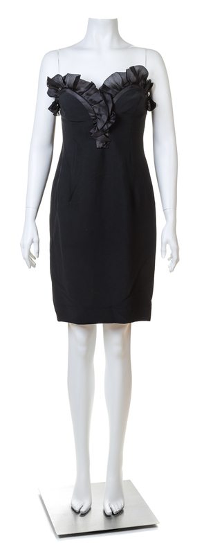 with a ruffled sweetheart neckline, a fitted bodice and a back zip closure.Labeled: Alberta Ferretti.