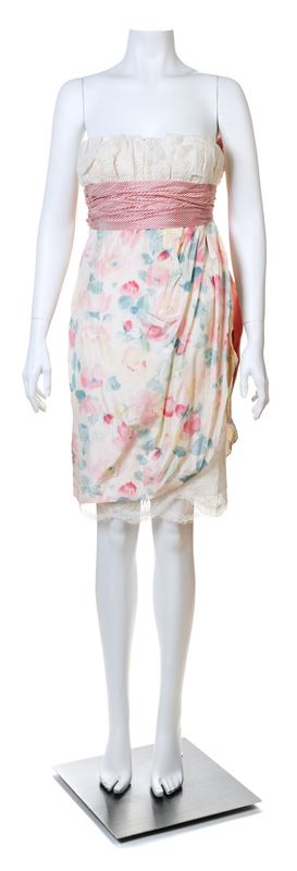 A Bernard Perris Silk Floral Strapless Dress Ensemble,