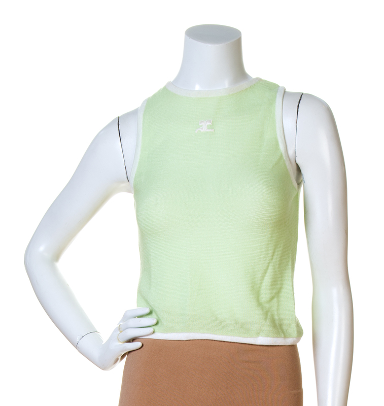 sleeveless with white trim and a logo center front.Labeled: Courreges.