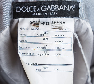 with front pleats, side vent hems and a front zip closure.Labeled: Dolce & Gabbana.