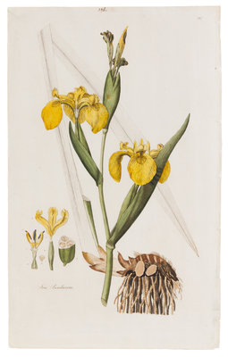 Iris Pseudacorusfrom Flora Londinensis, ca 1878Engraving with hand-coloring, plate 17 1/16 x 9 15/16 in, sheet 18 3/4 x 11 1/2 in, on unwatermarked laid paper, a few minor marginal chips discreetly repaired, manuscript plate number to upper margin, matted.