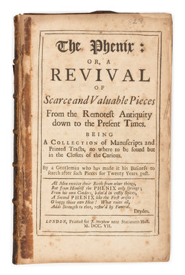 CAMPBELL, Alexander. A Journey from Edinburgh through Parts of North Britain... London, 1811. (Lacking volume 2.) Contemporary calf. -- [DUNTON, John] The Phenix. London, 1707. 2 volumes. Contemporary calf. -- HOYLAND, John. A Historical Survey of the Customs, Habits and Present State of the Gypsies... York, 1816. Contemporary quarter morocco. -- HUGHSON, David. Walks Through London. London, 1817. 2 volumes, 8vo. Contemporary red morocco, gilt. -- SAUSSURE, Louis Albert Necker de. Voyage to the Hebrides, or Western Islands of Scotland... London, 1822. ORIGINAL BOARDS. -- Together, 5 works in 7 volumes, 8vo and 4to, condition generally good.