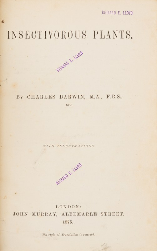 DARWIN, Charles (1809-1882). Insectivorous Plants. London: John Murray, 1875.