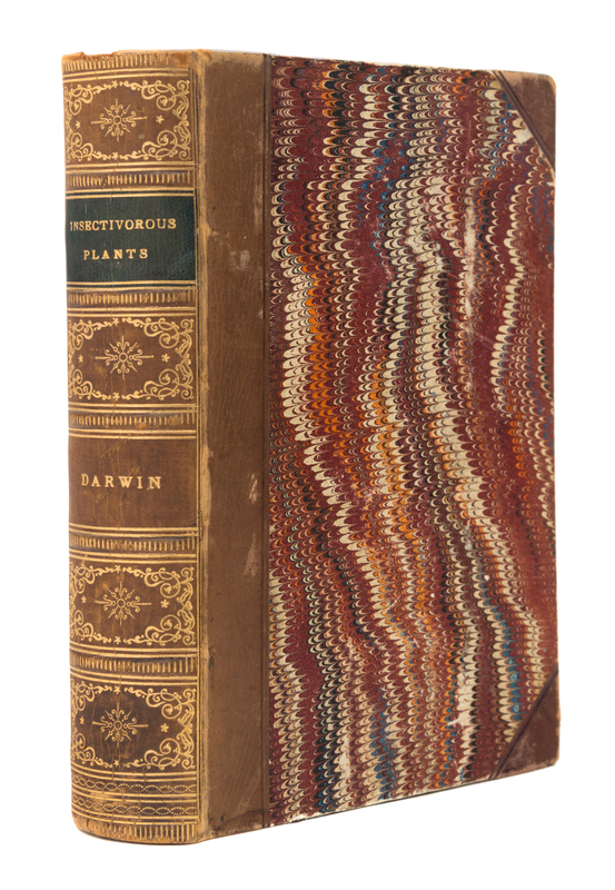 8vo (182 x 122 mm). Numerous in-text wood engravings after Darwin. (Lacking half-title, scant spotting.) Later half brown calf gilt, marbled boards, marbled edges. FIRST EDITION, in which Darwin explores the significance of carnivorous habits in plants. Norman 601.