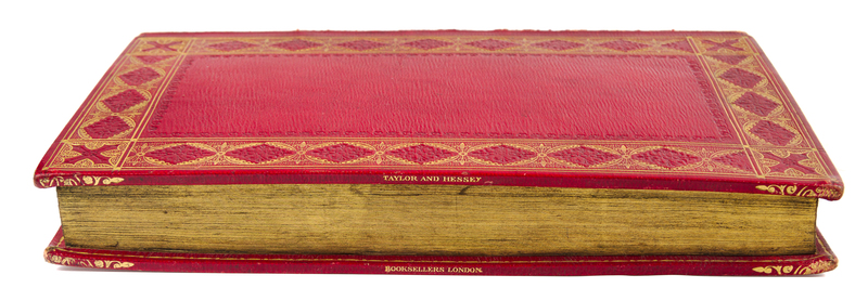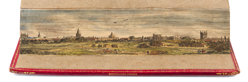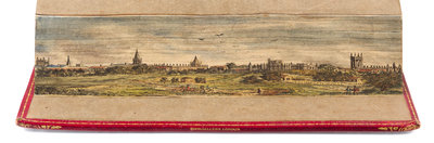 8vo (227 x 138 mm). Engraved portrait frontispiece. (Some spotting to frontispiece and a few leaves.) Contemporary red straight-grained morocco, wide filigree gilt border surrounding blind foliate roll-tool border, spine in 7 compartments with 6 raised bands, gilt-lettered in one, the rest with ornamental decoration gilt, board edges gilt, turn-ins gilt, edges gilt concealing a DOUBLE FORE-EDGE PAINTING of scenes at Oxford STAMP-SIGNED ON BOARD EDGES BY TAYLOR AND HESSEY (some very light scuffing or rubbing, otherwise bright). Young wrote his Night Thoughts after the death of his wife, and his work was frequently chosen to be finely bound and presented to a special family member or friend.