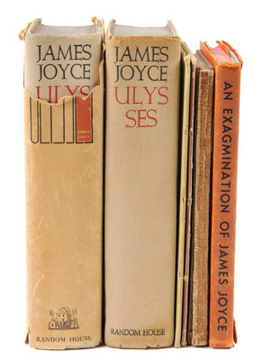 JOYCE, James A. Ulysses. Paris: Shakespeare and Company, 1928. Later blue cloth. 10th edition. Shakespeare & Co. advertisement card laid in. -- BECKETT, Samuel. An Exagmination of James Joyce. Norfolk, n.d. Publisher's teal cloth, original printed dust jacket. -- HERRING, Phillip F., editor. Joyce's Ulysses Notesheets in the British Museum. Publisher's brown cloth, original printed dust jacket. [With:] Joyce's Notes and Early Drafts for Ulysses. Selections from the Buffalo Collection. Publisher's brown cloth, gilt. Charlottesville, 1972 and 1977. Both SIGNED BY HERRING. -- LEVIN, Harry and Clive Driver. James Joyce Ulysses. A Facsimile of the Manuscript. New York and Philadelphia, 1975. Publisher's blue cloth, original white slipcase. -- With approximately 7 others, condition generally fine, complete list available upon request.