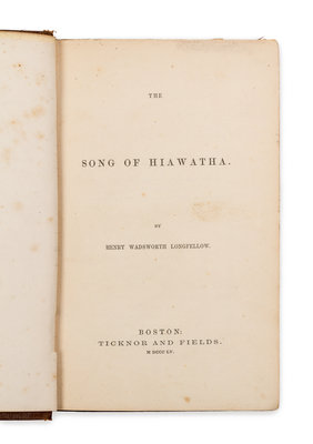 LONGFELLOW, Henry Wadsworth (1807-1882). The Song of Hiawatha. Boston: Ticknor and Fields, 1855.