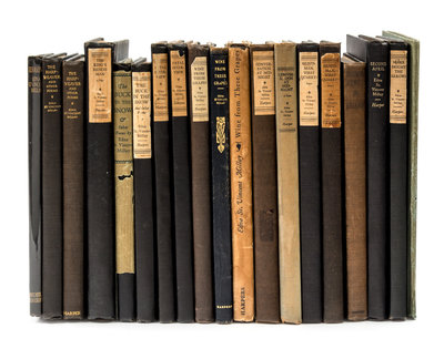 Renascence and Other Poems. New York, Mitchell Kennerley, 1917. -- The Harp-Weaver and Other Poems. October 1923. Provenance: Alice Thurston, McGirr, a classmate of Millay's at Vassar (note in her hand indicating that MILLAY READ POEMS FROM THIS COPY during a reading at the Twentieth Century Club, 21 January 1924). -- The King's Henchman. 1927 (but 1940). Twenty-fifth edition. -- The Buck in the Snow. 1928. Original printed dust-jacket (defective). -- Fatal Interview. 1931. -- Wine from These Grapes. 1934. -- Conversation at Midnight. 1937. Provenance: Marien Bacon (Vassar College Library label). -- Huntsman, What Quarry? 1939. -- And 11 others. Together, 19 works in 19 volumes, ALL FIRST TRADE EDITIONS except where noted, most in original bindings, published New York and London by Harper & Brothers, except where noted, condition generally fine, complete list available upon request.