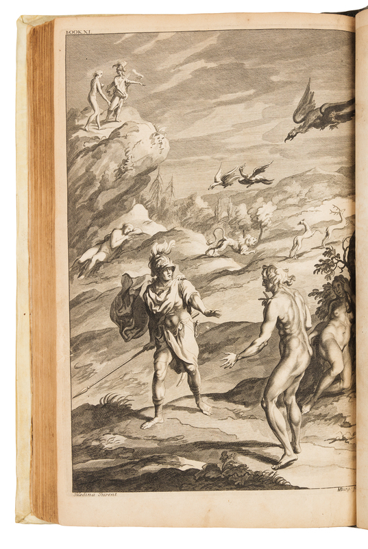 Small folio (313 x 199 mm). Engraved portrait frontispiece of Milton by William Faithorne signed R. White, 13 engraved plates, most by Michael Burghers or Peter Paul Bouche, 6pp. subscriber's list. (Some browning or spotting, a few edges fraying, a few leaves remargined, a few short tears repaired, occasionally affecting plates.) Modern quarter morocco, vellum (joint starting, some light staining or wear. Fourth Edition, the first illustrated edition, "the earliest serious effort to illustrate an important work of English poetry" (Hodnett). ESTC R13313; E. Hodnett, Five Centuries of Book Illustration, 1988, p.63; Wing M2146.