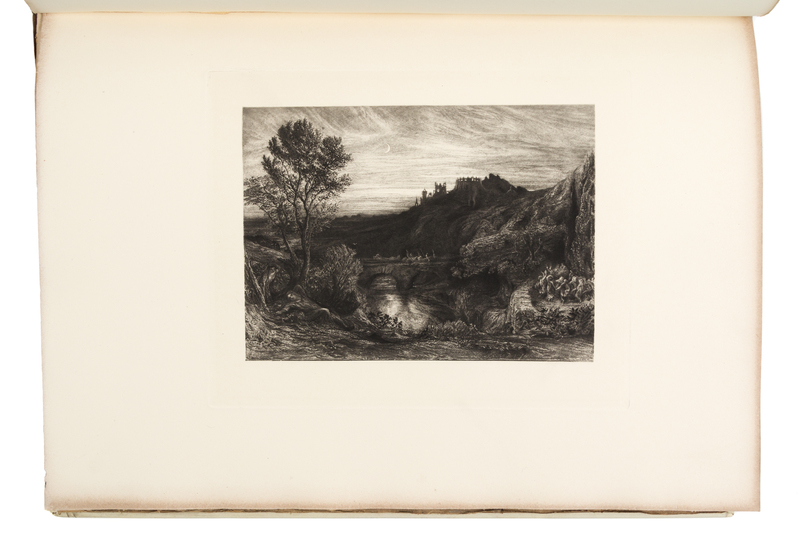 Folio (374 x 263 mm). Half-title and title printed in red and black, 12 etched plates. (Some light dust-soiling to outer margin, a few leaves with scant marginal spotting.) Original vellum gilt, top edge gilt, others uncut (covers slightly bowed, a few minor stains). LIMITED EDITION, number 72 of 135 LARGE PAPER COPIES. A.H. Palmer carried out the publication of this work after his father's death: "I proposed to embellish an edition of Milton's Minor Poems with reproductions, carefully prepared by my own hand, of ten drawings in Mr. Valpy's collection, besides one or two examples existing elsewhere, and to publish the volume as a companion to the Virgil (introduction, p.xix).