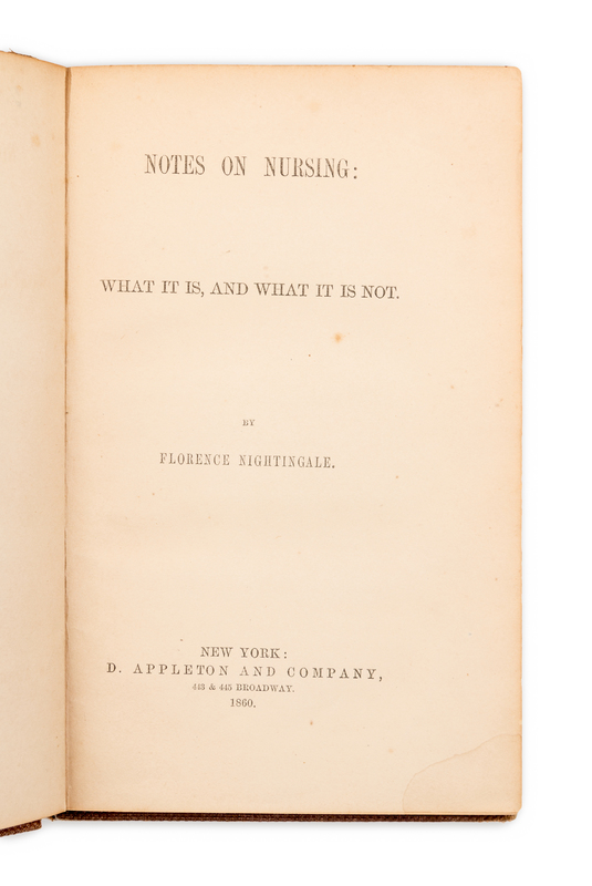 NIGHTINGALE, Florence (1820-1910). Notes on Nursing: What it is, and What it is Not. New York: D. Appleton and Company, 1860.