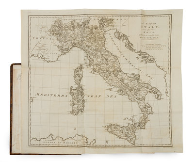 Two volumes, 4to (265 x 212 mm). Half-title to vol.II, engraved folding map of Italy after F.D. Sotzman, 19 folding engraved plates, including 7 after Piranesi, 7pp. engraved music. (No title-page to vol.II.) Contemporary calf gilt, edges yellow (some light wear, joints starting with some light chipping, hinges with old tape repairs). FIRST EDITION IN ENGLISH, following the First Edition published in Konigsburg and Leipzig, 1794.