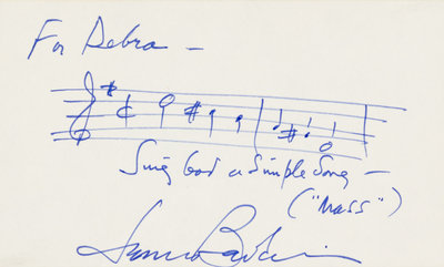 BERNSTEIN, Leonard (1918-1990). Autograph musical quotation signed ("Leonard Bernstein") and inscribed for Debra. N.d.