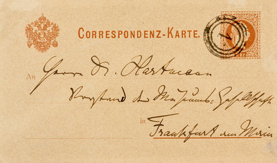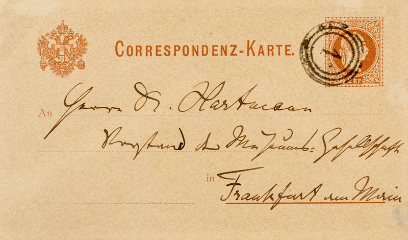 1 page, 12mo postcard, some toning & mat burn. In German. Sending apologies & thanks for a letter which was forwarded to an unnamed composer in Italy.