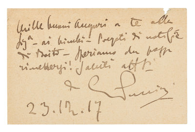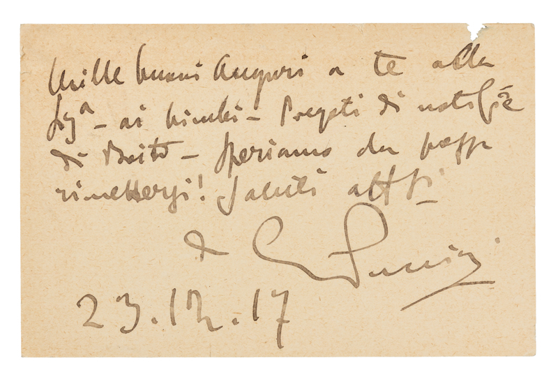 PUCCINI, Giacomo (1858-1924). Autograph note signed ("G. Puccini"), in Italian, to Carlo Clausetti. N.p., 23 December 1917.