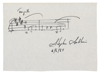 SONDHEIM, Stephen (b. 1930). Autograph musical quotation signed ("Stephen Sondheim"), n.p., 8 June 1984.