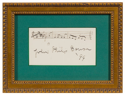 BRITTEN, Benjamin (1913-1976). Autograph letter signed ("Benjm Britten") to the Mayor, Aldeburgh, 9 August 1951. 1 page, 8vo, on Crabbe St. Aldeburgh stationery, two filing holes in left margin touching a few letters. Britten thanks the Mayor for the invitation to an Oyster Feast, but has to decline, as he has a professional engagement. -- HAMLISCH, Marvin (1944-2012). Autograph musical quotation signed ("Marvin Hamlisch"), to Sharon, n.p., n.d. 1 page, 8vo, two bars from "The Way we Were." -- MANCINI, Henry (1924-1994). Autograph musical quotation signed ("Henry Mancini"), n.p., n.d. 1 page, 4to, two bars on a handwritten stave from "Moon River", beneath typed lyrics of the song, small clear mounting corners to blank area. -- SOUSA, John Philip (1854-1932). Autograph musical quotation signed ("John Philip Sousa"), 1899. 1 page, oblong 12mo, three measures notated on a hand-drawn stave from a march in 6/8 time. -- Together, 4 manuscripts.