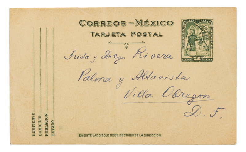 TROTSKY, Leon (1879-1940). Autograph note on correspondence card signed ("LD"), in French, to Frida Kahlo and Diego Rivera. N.p. [Mexico], n.d. [c.1940].