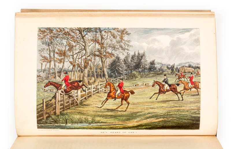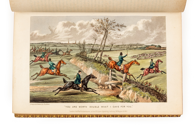 8vo (232 x 151 mm). 36 hand-colored aquatint plates after Henry Alken (including frontispiece and title). (Some very minor spotting, otherwise, coloring very bold.) Contemporary maroon morocco gilt, spine gilt, edges gilt (some light wear, upper cover detached). FIRST EDITION, FIRST ISSUE, with the four mounted plates, and "The Tandem" opposite p.348. Apperley's work, with illustrations by Alken, is "considered by many to be the premier coloured plate sporting book in the 19th century" (Tooley). Schwerdt I, p.38; Tooley 67.
