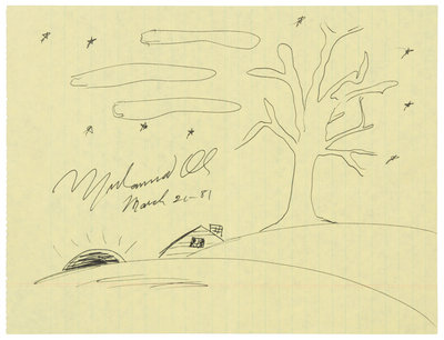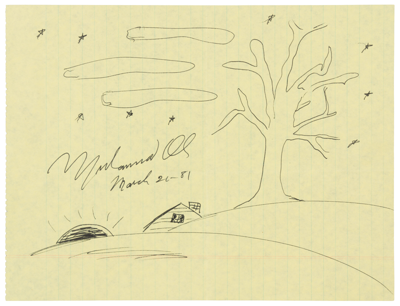 ALI, Muhammad (1942-2016). Original drawing, signed left center ("Muhammad Ali").