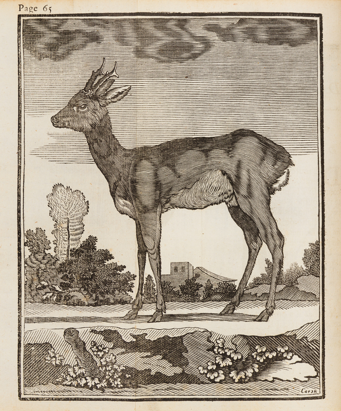 2 parts in one volume, 8vo (200 x 122 mm). 23 woodcut plates (of which 13 folding, 7 printed on two sides), 14pp. engraved music. Contemporary mottled calf, red morocco lettering-piece gilt, spine gilt, edges red (joints starting, some overall wear, covers slightly bowed). FIRST EDITION of a work which Schwerdt ranks "with the classics on hunting," and including woodcut plates depicting deer, wolves, foxes, and other animals. Schwerdt I, p.313.