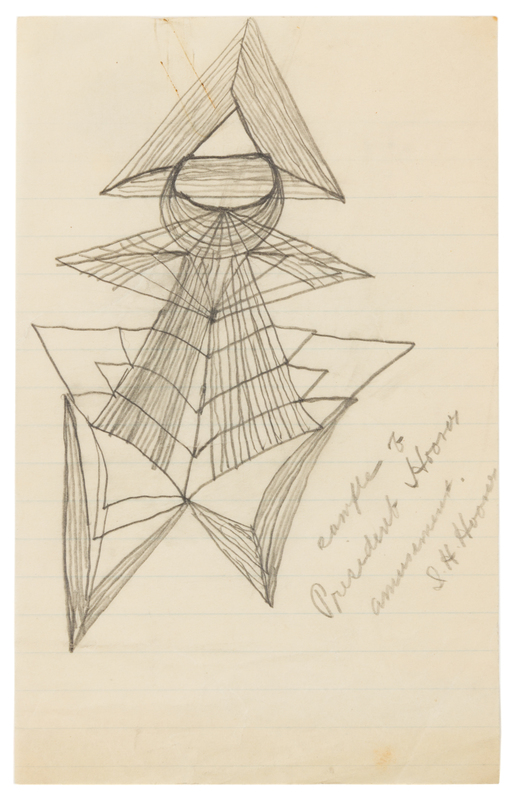 1 page, 8vo (200 x 125 mm) on a lined sheet, lightly toned. A geometrically-shaped doodle, with a note from White House Chief Usher Irving H. Hoover: "Sample of President Hoover's amusement. I.H. Hoover."