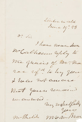 VAN BUREN, Martin (1782-1862). Autograph letter signed ("M. Van Buren"), to Mr. McPhilily(?). Lindenwald, 19 June 1858.