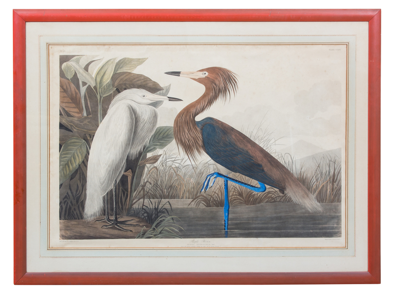 Purple Heron (Plate CCLVI)Ardea RufescensEngraving with etching, aquatint and hand-coloring, ca 1835, on J Whatman paper watermarked 1835, plate 24 1/2 x 36 5/8 in (25 5/8 x 38 in sheet), some overall browning and spotting, a few short tears to upper margin, adhered in top and bottom margins on verso to mat, matted and framedLow p. 121, variant 1