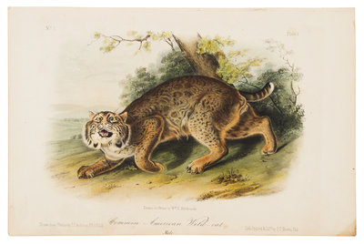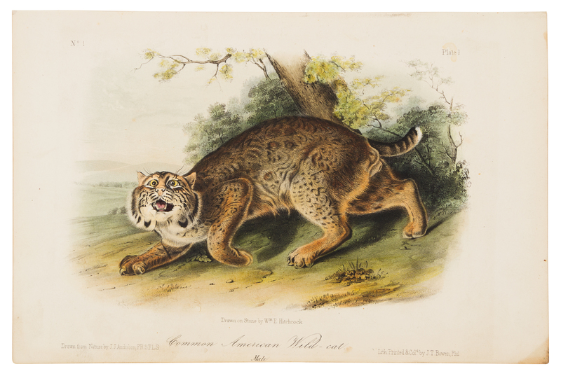 Common Wild-cat (Plate 1) -- American Cross Fox (Plate 6) -- Canada Lynx. Male (Plate 16) -- Prong-Horned Antelope (Plate 77) -- Cougar (Plate 97) -- Tawny Weasel (Plate 148)From Quadrupeds of America, octavo edition, Philadelphia, ca 1849-18545 lithographs with hand-coloring, sheets approximately 6 13/16 x 10 1/2 in, some minor browning