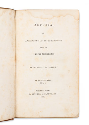 IRVING, Washington (1783-1859). Astoria, or Anecdotes of an Enterprise beyond the Rocky Mountains. Philadelphia: Carey, Lea and Blanchard, 1836.