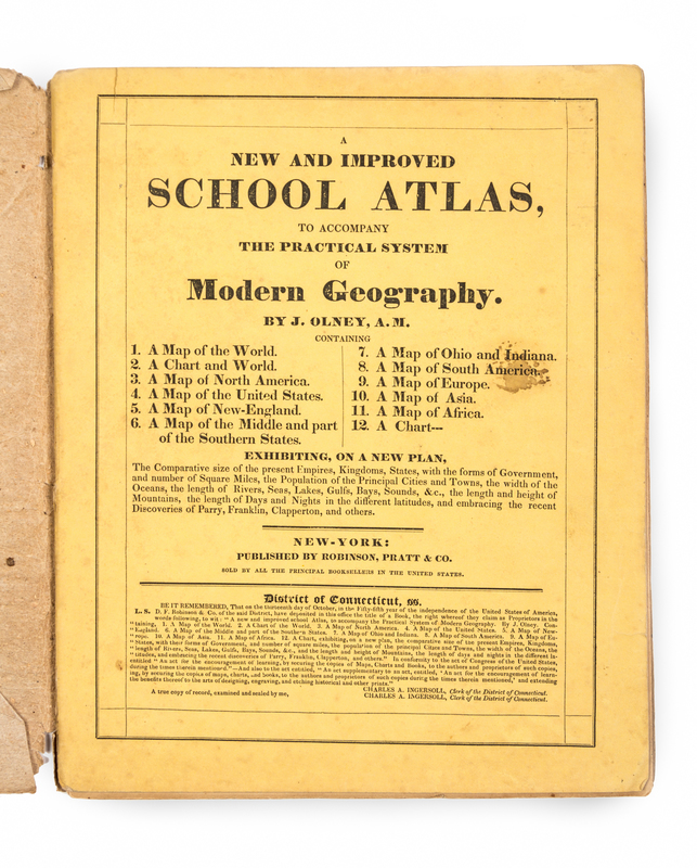 [ATLAS]. OLNEY, Jesse (1798-1872). A New and Improved School Atlas, to Accompany the Practical System of Modern Geography. New York: Robinson, Pratt & Co, ca 1831.