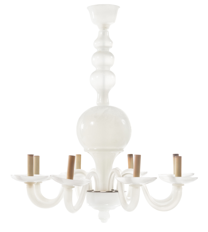 an eight-light glass chandelier