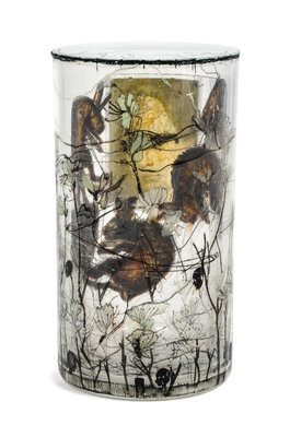 assembled glass cylinder with mixed media