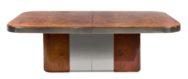 burl wood and mirrored steel