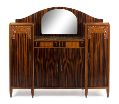 serving cabinet, with mirror and marble inset