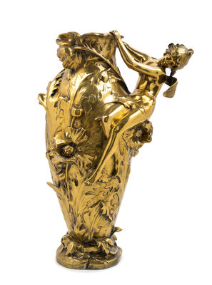 an Art Nouveau vase, of baluster form with Psyche form handle and floral decoration