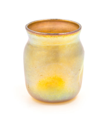 a Favrile glass toothpick holder, with gold iridescence