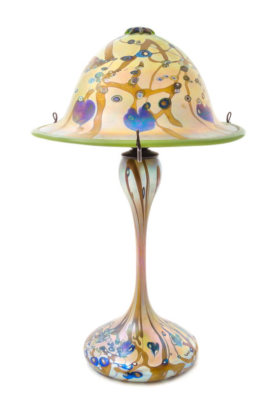 an iridescent glass table lamp