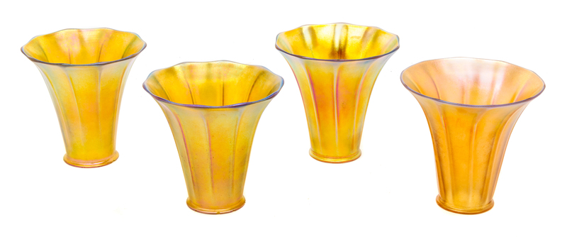 a group of four Aurene glass shades