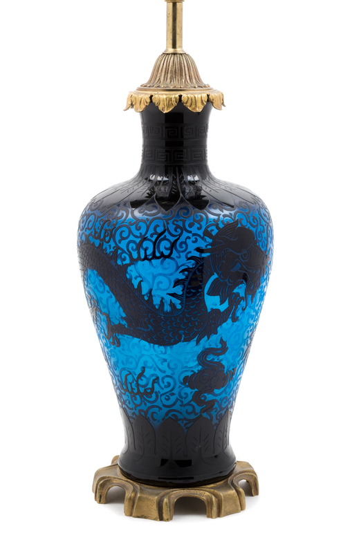a double etched dragon lamp, form no. 6094, in mirror black and celeste blue